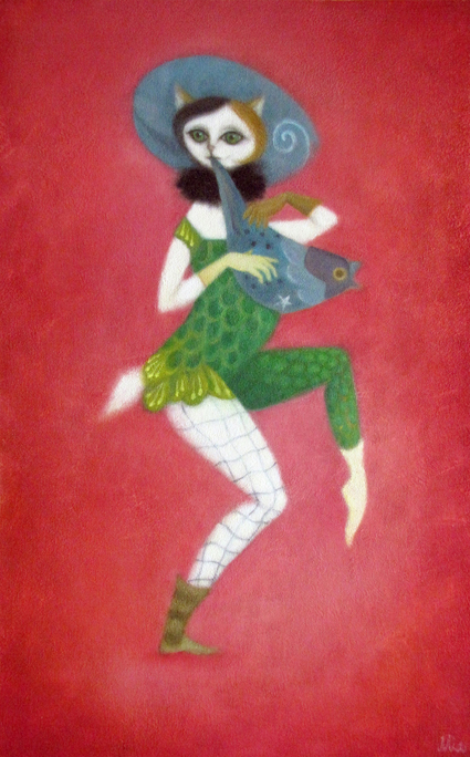 油彩: ばんどねこ、鳥担当 oil paint "BANDcats, the bird" |