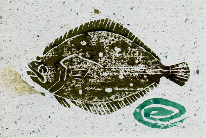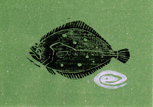 woodblock printing "a flounder" with different papers