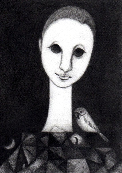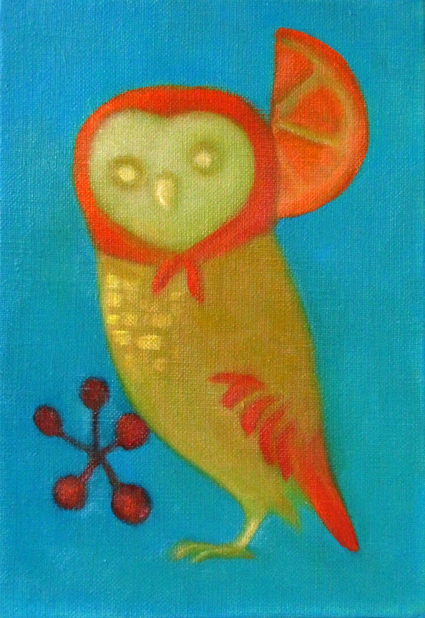 油彩: フクロウオバサン oil paint "owl-lady" |