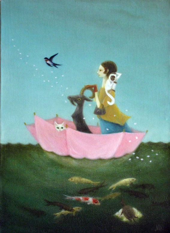 油彩: 春、私の町、私の舟 oil paint "Spring, my town, my boat" |