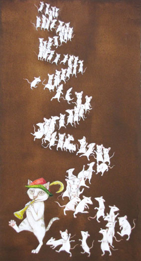 油彩: ばんどねこ、芋虫担当 oil paint "BANDcats, the caterpillar" |